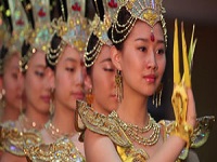 Dunhuang Dance is a form of Chinese dance that draws sources from body movements depicted in artifacts found in Dunhuang Mogao Caves. Located in Gansu Province of China, along the Silk Route, at the crossroads of trade as well as religious, cultural and intellectual influences, the seven hundred and thirty five caves are famous for their statues and fresco paintings, spanning 1,000 year of Buddhist art. Thousand Hand Guan Yin, a representative of Dunhuang Dance featured in this program is a contemporary creation conceived by the renowned Chinese choreographer, ZHANG Jigang, and produced by the China Disabled Performing Art Troupe. In this dance, a group of hearing-impaired dancers effectively utilize their body language to communicate the magic of "thousand hands" and hints at the deep meaning of Buddhism, its luminescence and boundless love.